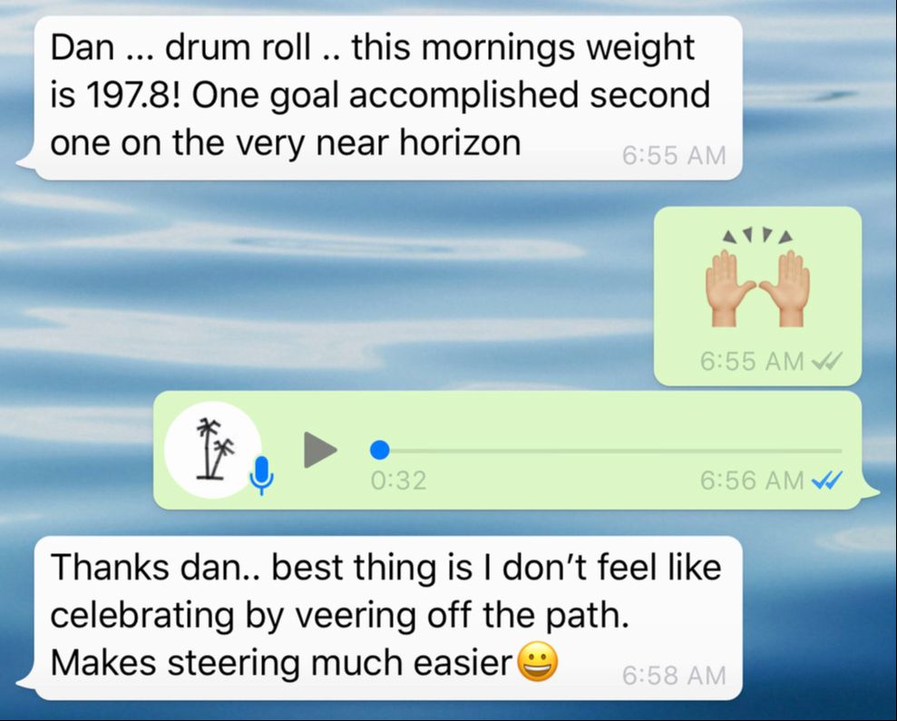 ● We hold you highly accountable and coach you through text and phone to make sure you're staying on the plan.