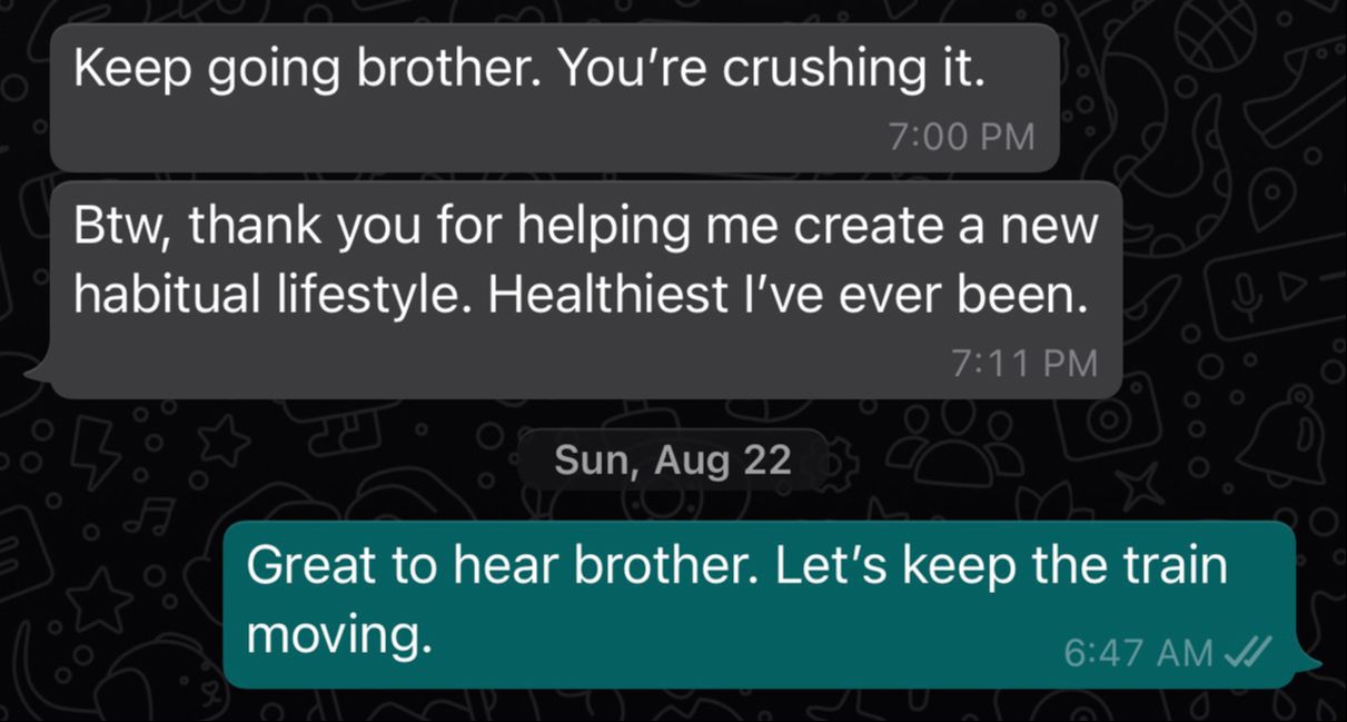 Transitioned from drifting without accountability to embracing a structured and effective fitness routine—a complete lifestyle overhaul that brought discipline into his daily life,