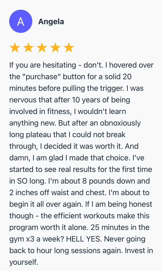 Our program is like having a personal trainer, nutritionist, mindset coach, accountability partner & concierge all in one.