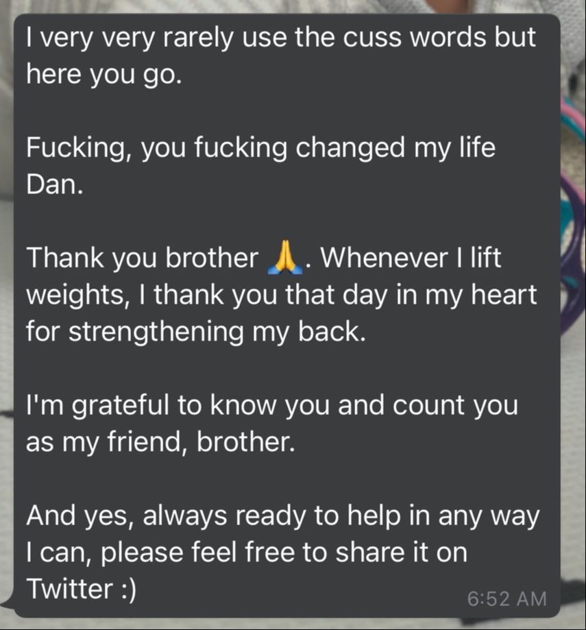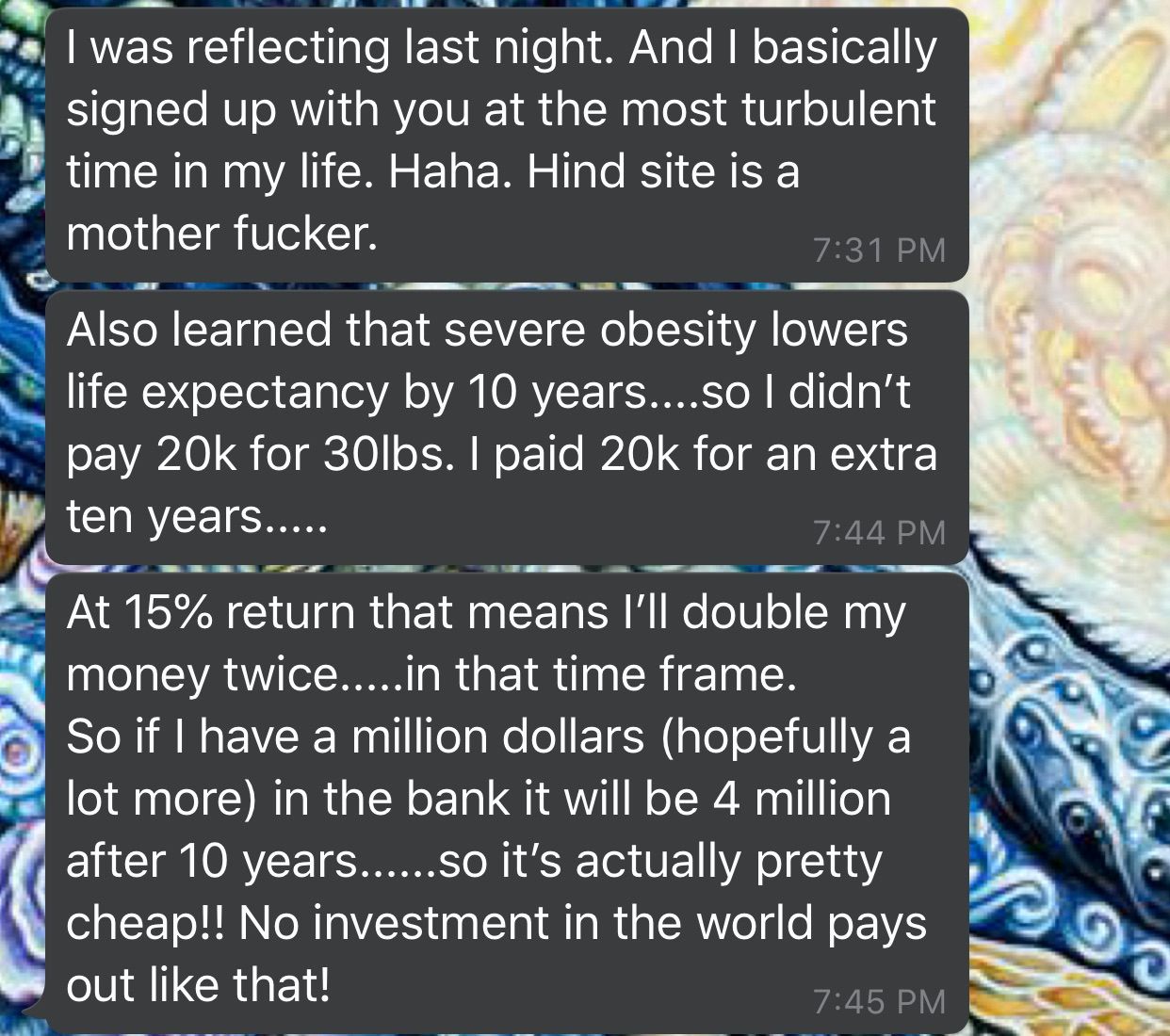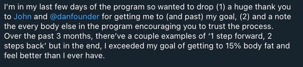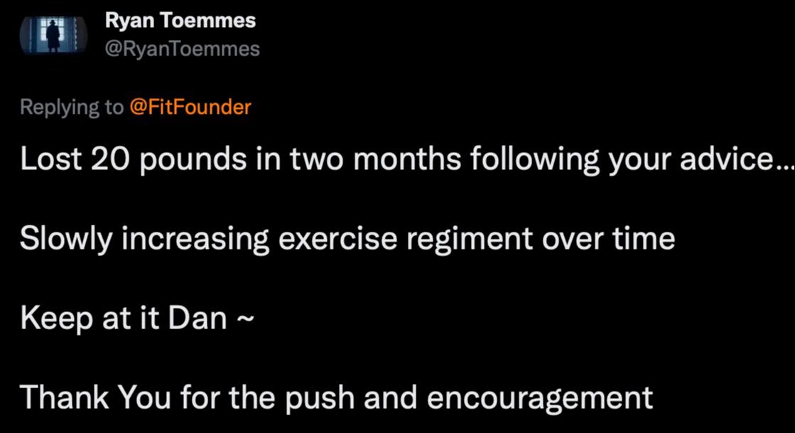 "I stumbled upon you on Twitter, decided to look at one of your videos. And I said the heck with it, let's just do it. And I'm really, really happy that I did. "